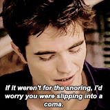 She gasped and threw her pillow at me. "I do not snore!"